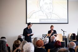 Petr Sís přebírá Cenu Jaroslava Seiferta. (Foto: Milan Jaroš)